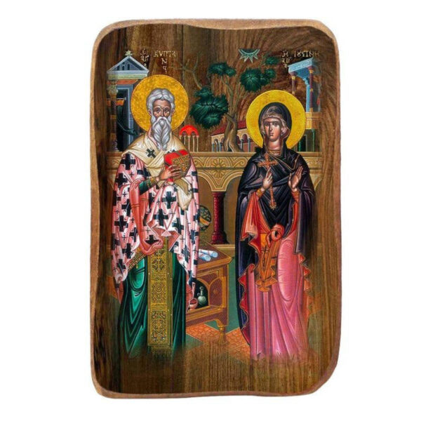 Εικόνα Ορθοδοξίας με περίγραμμα χρυσό σε ξύλο Φλαμουρίας με βάση Μπομπονιέρα Βάπτισης Άγιος Κύπριος και Αγία Ιουστίνα Σετ 20 τεμαχίων, Εικόνα Βάπτισης, Χειροποίητη Βυζαντινή εικόνα Bomboniera 9x6cm, Χριστιανικό Δώρο Διάσταση 10×7 cm (3,9 x 2,8 ίντσες) INTRAEK-816724065