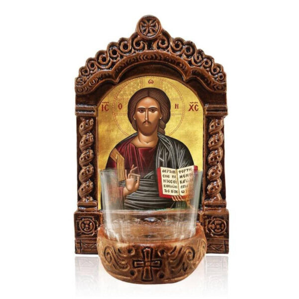 Εικόνα Ορθοδοξίας με περίγραμμα χρυσό σε ξύλο Φλαμουρίας με βάση Φωτιστικό Αγρυπνίας Ιησού Χριστού, Εικονίδιο Επιτραπέζιου Ιησού Χριστού Ευλόγων, Χειροποίητο Κεραμικό Φωτιστικό με Γυάλινο Κύπελλο Διάσταση 10×7 cm (3,9 x 2,8 ίντσες) INTRAEK-816723738