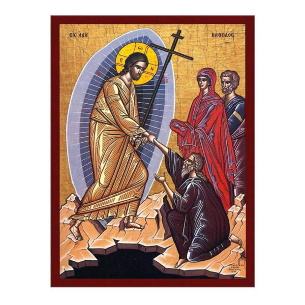 Φέρτε μια νότα διαχρονικής πίστης και παράδοσης στο σπίτι ή την εκκλησία σας με αυτή την εξαίσια ξύλινη εικόνα της καθόδου του Ιησού Χριστού στον Άδη (είσαι άδου καθόδου). Φτιαγμένο με αυθεντικό βυζαντινό ορθόδοξο στιλ, αυτό το εικονίδιο διαθέτει κλασικό σχέδιο με παραδοσιακό κόκκινο περίγραμμα καδμίου που αναδεικνύει την κομψότητα του.