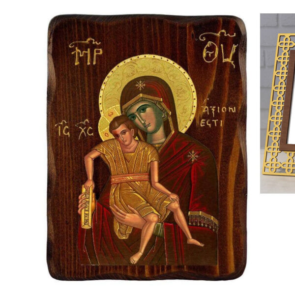 Εικόνα Ορθοδοξίας με περίγραμμα χρυσό σε ξύλο Φλαμουρίας με βάση Εικόνα Παναγίας Άξιον Εστίν, Χειροποίητη Ελληνική εικόνα Παναγίας Άξιον Εστίν, επιτοίχια πλάκα βυζαντινής τέχνης, θρησκευτικό δώρο, χριστιανική διακόσμηση Διάσταση 15×11 cm (5,9 x 4,3 ίντσες) INTRAEK-16723937