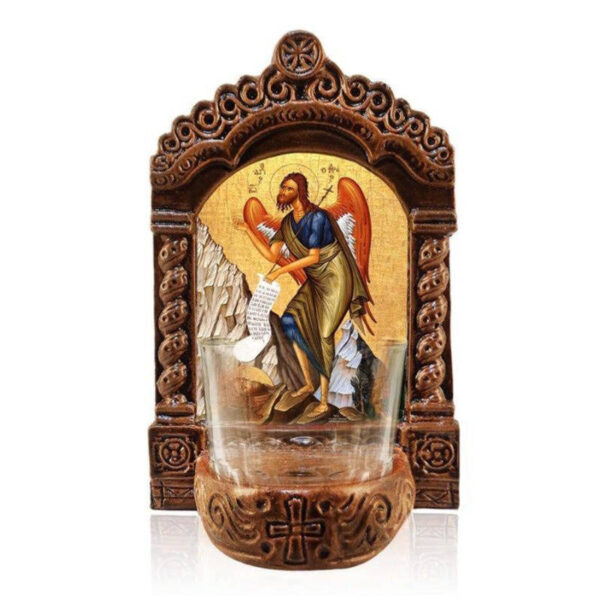Εικόνα Ορθοδοξίας με περίγραμμα χρυσό σε ξύλο Φλαμουρίας με βάση Ιωάννης ο Πρόδρομος Λυχνία, Άγιος Ιωάννης ο Πρόδρομος Κεραμική επιτραπέζια εικόνα, Άγιος Ιωάννης Πρόδρομος Αγρυπνός Λυχνία με Κύπελλο Διάσταση 15×11 cm (5,9 x 4,3 ίντσες) INTRAEK-16723924
