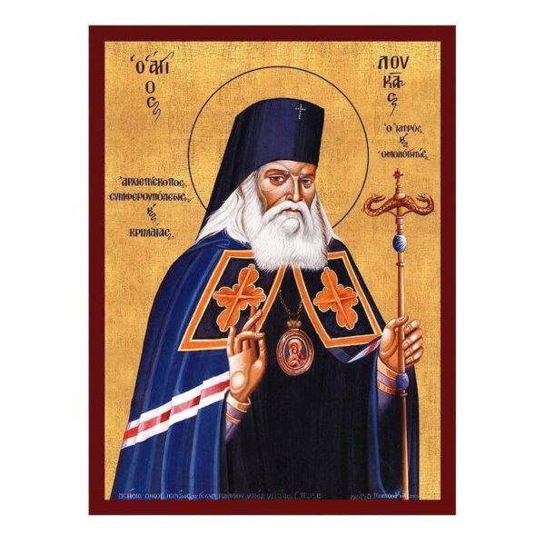 Αυτή η όμορφη βυζαντινή ξύλινη εικόνα του Αγίου Λουκά του Ιατρού (Άγιος Λουκάς ο Ιατρός) τιμά τον σεβαστό άγιο, γνωστό για το διπλό του ρόλο ως επιδέξιος θεραπευτής και ευσεβής δούλος του Χριστού. Ένας σύγχρονος θαυματουργός και επίσκοπος, η ζωή του Αγίου Λουκά είναι μια απόδειξη της αρμονικής ανάμειξης της επιστήμης και της πίστης, καθώς έφερε σωματική και πνευματική θεραπεία σε όσους έχουν ανάγκη.