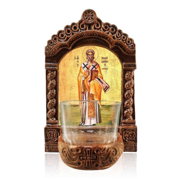 Εικόνα Ορθοδοξίας με περίγραμμα χρυσό σε ξύλο Φλαμουρίας με βάση Αγρυπνός Άγιος Πολύκαρπος, Άγιος Πολύκαρπος Σμύρνης Ελληνική Επιτραπέζια Εικόνα, Χειροποίητο Κεραμικό Φωτιστικό με Γυάλινο Κύπελλο Διάσταση 15×11 cm (5,9 x 4,3 ίντσες) INTRAEK-16723874