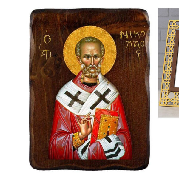 Εικόνα Ορθοδοξίας με περίγραμμα χρυσό σε ξύλο Φλαμουρίας με βάση Εικόνα Αγίου Νικολάου, Χειροποίητη ελληνορθόδοξη εικόνα του Αγίου Νικολάου, επιτοίχια πλάκα βυζαντινής τέχνης, θρησκευτικό δώρο, χριστιανική διακόσμηση Διάσταση 15×11 cm (5,9 x 4,3 ίντσες) INTRAEK-16723852