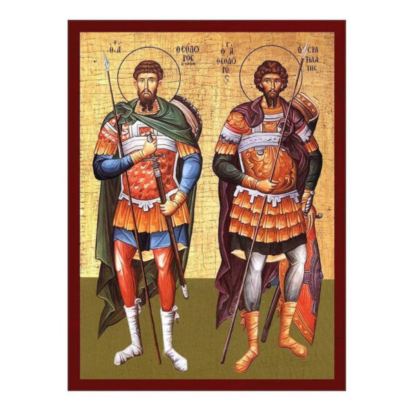 Ιδανική για χώρους προσευχής, διακόσμηση εκκλησιών ή ως δώρο με νόημα, αυτή η εικόνα αντικατοπτρίζει την πνευματική κληρονομιά των Αγίων Θεόδωρου του Τύρωνα και Θεοδώρου του Στρατηλάτη ως πρότυπα ανδρείας, πίστης και αφοσίωσης στον Θεό.