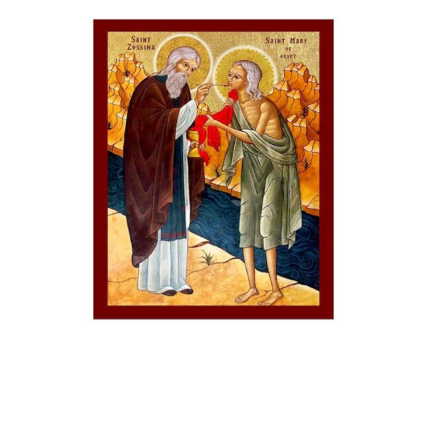 Ιδανική για χώρους προσευχής, διακόσμηση εκκλησιών ή ως δώρο με νόημα, αυτή η εικόνα τιμά την πνευματική κληρονομιά των Αγίων Μαρίας της Αιγύπτου και του Ζωσιμά ως ισχυρά παραδείγματα μετάνοιας, ταπεινοφροσύνης και θείας χάριτος.
