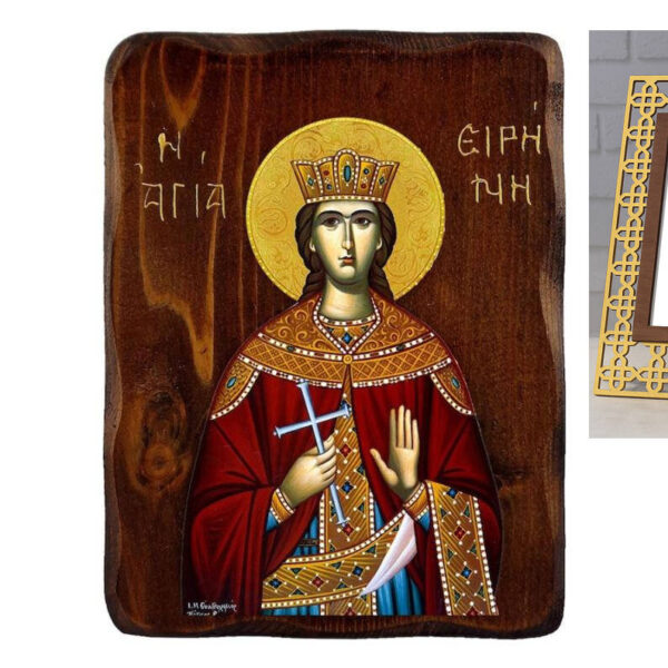 Εικόνα Ορθοδοξίας με περίγραμμα χρυσό σε ξύλο Φλαμουρίας με βάση Εικόνα Αγίας Ειρήνης, Χειροποίητη Ελληνορθόδοξη εικόνα Αγίας Ειρήνης, επιτοίχια πλάκα βυζαντινής τέχνης, θρησκευτικό δώρο, χριστιανική διακόσμηση Διάσταση 26×20 cm (10,2 x 7,9 ίντσες) INTRAEK-3216723978
