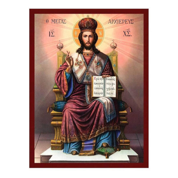 Αυτή η εξαίσια βυζαντινή ξύλινη εικόνα του Ιησού Χριστού του Αρχιερέα απεικονίζει τον Χριστό ως τον αιώνιο μεσολαβητή μεταξύ Θεού και ανθρωπότητας. Απεικονιζόμενος με την παραδοσιακή βυζαντινή τέχνη, ο Χριστός παρουσιάζεται με πλήρη ιερατική ενδυμασία, συμβολίζοντας τη θεϊκή Του εξουσία, τη χάρη και την υπέρτατη θυσία για τη λύτρωση της ανθρωπότητας.
