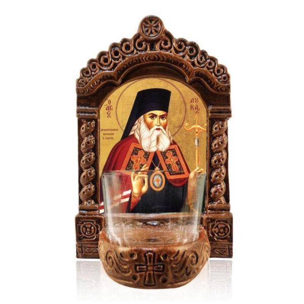 Εικόνα Ορθοδοξίας με περίγραμμα χρυσό σε ξύλο Φλαμουρίας με βάση Φωτιστικό Αγρυπνίας Άγιος Λουκάς ο Ιατρός, Εικόνα Επιτραπέζιο Άγιος Λουκάς ο Ιατρός, Χειροποίητο Κεραμικό Φανάρι με γυάλινο κύπελλο Διάσταση 40×30 cm (15,8 x 11,8 ίντσες)INTRAEK-43216724164
