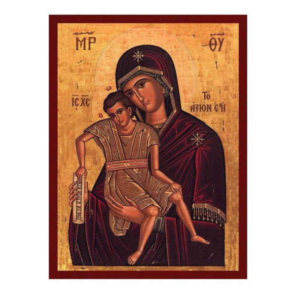 Εικόνα Ορθοδοξίας με περίγραμμα χρυσό σε ξύλο Φλαμουρίας με βάση Virgin Mary It Is Truly Meet Icon, Χειροποίητη Ελληνική εικόνα του It Is Truly Meet, επιτοίχια πλάκα βυζαντινής τέχνης, χριστιανικό δώρο Διάσταση 40×30 cm (15,8 x 11,8 ίντσες)INTRAEK-43216724134