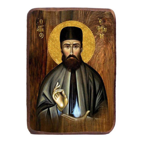 Εικόνα Ορθοδοξίας με περίγραμμα χρυσό σε ξύλο Φλαμουρίας με βάση Μπομπονιέρα Βάπτισης Άγιος Εφραίμ Σετ 20 τεμαχίων, Εικόνα Βάπτισης, Μπομπονιέρα Χειροποίητη Βυζαντινή εικόνα 9x6cm, Χριστιανικό Δώρο Διάσταση 40×30 cm (15,8 x 11,8 ίντσες)INTRAEK-43216724100
