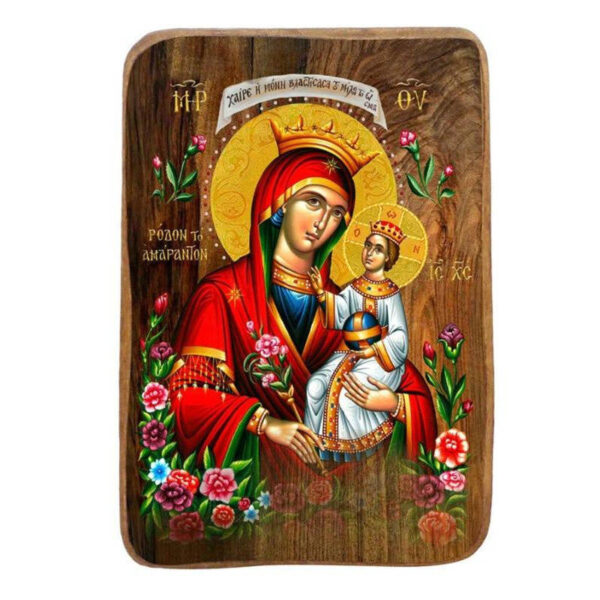 Εικόνα Ορθοδοξίας με περίγραμμα χρυσό σε ξύλο Φλαμουρίας με βάση Μπομπονιέρα Βάπτισης Παναγία του Αχαλίνωτου Τριαντάφυλλου Σετ 20 τεμαχίων, Εικόνα Βάπτισης, Μπομπονιέρα Χειροποίητη Βυζαντινή εικόνα 9x6cm, Χριστιανικό Δώρο Διάσταση 40×30 cm (15,8 x 11,8 ίντσες)INTRAEK-43216724035