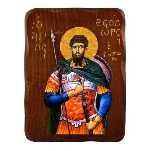 Εικόνα Ορθοδοξίας με περίγραμμα χρυσό σε ξύλο Φλαμουρίας με βάση Εικόνα Αγίου Θεοδώρου Tyro, Χειροποίητη ελληνορθόδοξη εικόνα του Αγίου Θεοδώρου, επιτοίχια πλάκα βυζαντινής τέχνης, θρησκευτικό δώρο, χριστιανική διακόσμηση Διάσταση 40×30 cm (15,8 x 11,8 ίντσες)INTRAEK-43216723960