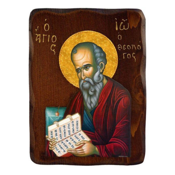 Γιορτάστε τη σοφία και την αγάπη του Αγίου Ιωάννη του Θεολόγου με αυτή τη διαχρονική εικόνα, φόρο τιμής στην αφοσίωση και την πνευματική του διορατικότητα.