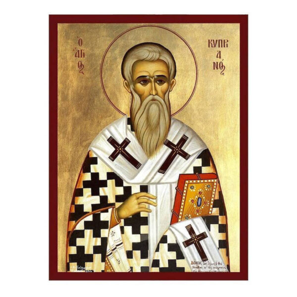 Εικόνα Ορθοδοξίας με περίγραμμα χρυσό σε ξύλο Φλαμουρίας με βάση Εικόνα του Αγίου Κυπριακού, Χειροποίητη Βυζαντινή εικόνα του Αγίου Κυπριανού, Κρεμαστή πλάκα θρησκευτικής τέχνης, Χριστιανικό δώρο Διάσταση 40×30 cm (15,8 x 11,8 ίντσες)INTRAEK-43216723861