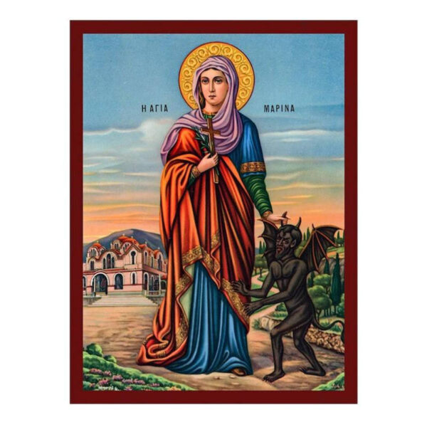 Ιδανική για γωνιές προσευχής, εκκλησιές ή ως στοχαστικό δώρο, αυτή η εικόνα συμβολίζει τη σταθερή πίστη, την ανθεκτικότητα και τη θεία χάρη της Αγίας Μαρίνας.