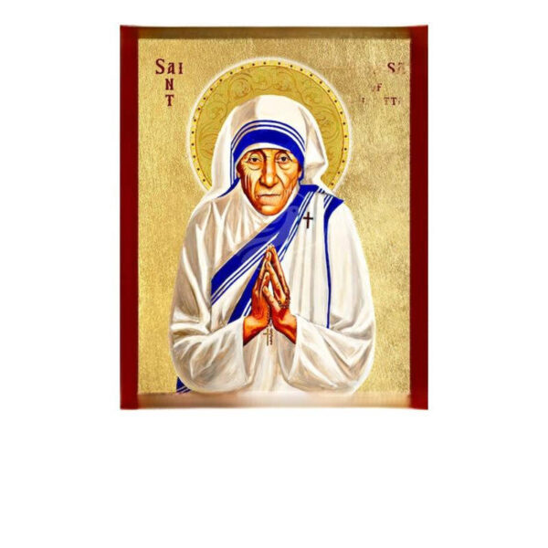 Ιδανική για χώρους προσευχής, διακόσμηση εκκλησιών ή ως δώρο με νόημα, αυτή η εικόνα τιμά την πνευματική κληρονομιά της Αγίας Μητέρας Τερέζας ως πρότυπο αγάπης, ταπεινοφροσύνης και υπηρεσίας προς τους άλλους.