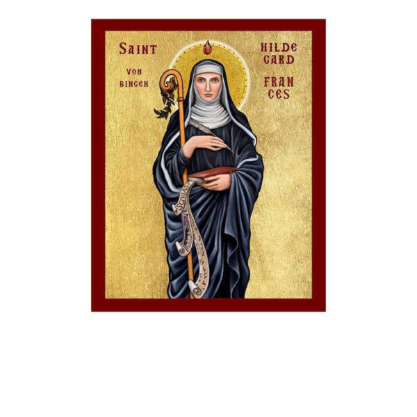 Ιδανικό για χώρους προσευχής, εκκλησιές ή ως στοχαστικό δώρο, αυτή η εικόνα γιορτάζει την πνευματική και πνευματική κληρονομιά της Αγίας Χίλντεγκαρντ ως σύμβολο αφοσίωσης, δημιουργικότητας και σοφίας.