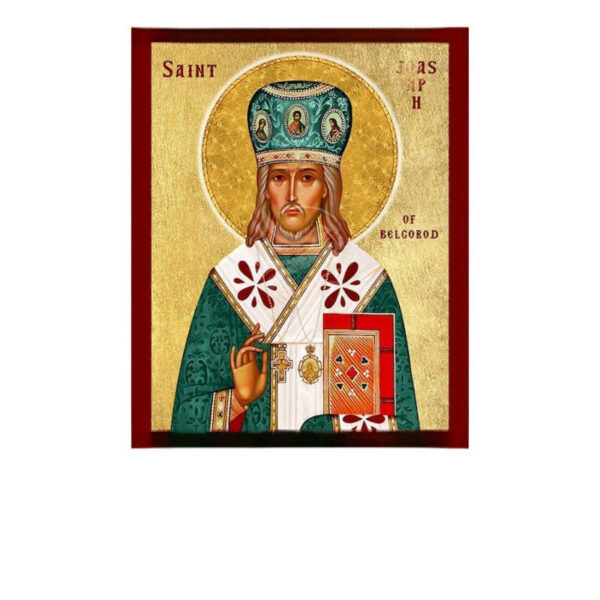Αυτή η εντυπωσιακή βυζαντινή ξύλινη εικόνα του Αγίου Ιωάσαφ του Μπέλγκοροντ γιορτάζει τη ζωή ενός από τους πιο αγαπημένους Ρώσους Ορθόδοξους αγίους. Γνωστός για τη βαθιά του πίστη, τη σοφία και τη συμπόνια του, ο Άγιος Ιωάσαφ αφιέρωσε τη ζωή του στην υπηρεσία της Εκκλησίας και του ποιμνίου του ως επίσκοπος. Η κληρονομιά του χαρακτηρίζεται από την πνευματική του καθοδήγηση, τα θαύματα και την ακλόνητη δέσμευσή του στον Χριστό.