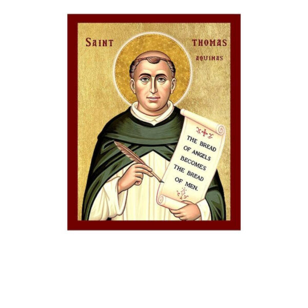 Ιδανική για χώρους προσευχής, διακόσμηση εκκλησιών ή ως δώρο με νόημα, αυτή η εικόνα τιμά τη σοφία, την αφοσίωση και το πνευματικό βάθος του Αγίου Θωμά του Ακινάτη.