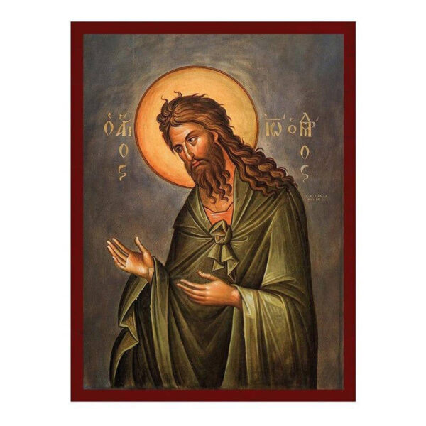 Ιδανική για χώρους προσευχής, διακόσμηση εκκλησιών ή ως δώρο με νόημα, αυτή η εικόνα γιορτάζει την κληρονομιά του Αγίου Ιωάννη ως πρότυπο πίστης, ταπεινοφροσύνης και τόλμης στη διακήρυξη της αλήθειας του Θεού.