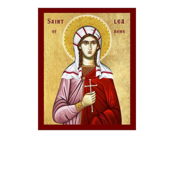 Αυτή η όμορφη βυζαντινή ξύλινη εικόνα της Αγίας Λείας της Ρώμης τιμά τη ζωή μιας αξιοσημείωτης παλαιοχριστιανικής αγίας γνωστής για την ταπεινοφροσύνη, την αφοσίωση και την ανιδιοτελή της υπηρεσία. Ως χήρα που αφιέρωσε τη ζωή της στον Χριστό, η Αγία Λία έγινε υπόδειγμα αρετής, προσευχής και φιλανθρωπίας, εμπνέοντας αμέτρητους Χριστιανούς να ακολουθήσουν το παράδειγμά της πίστης και ευσέβειας.