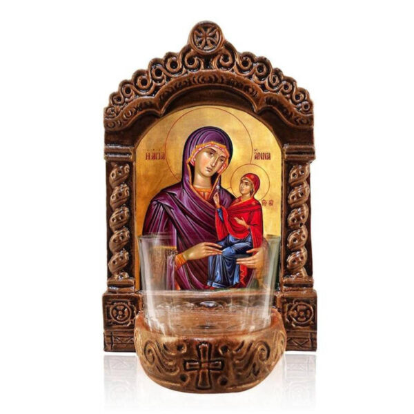 Εικόνα Ορθοδοξίας με περίγραμμα χρυσό σε ξύλο Φλαμουρίας με βάση Φωτιστικό Αγίας Άννας, Εικόνα Επιτραπέζιας Αγίας Άννας, Χειροποίητο Κεραμικό Φωτιστικό με Γυάλινο Κύπελλο Διάσταση 45×35 cm (17,7 x 13,8 ίντσες) INTRAEK-543216724171