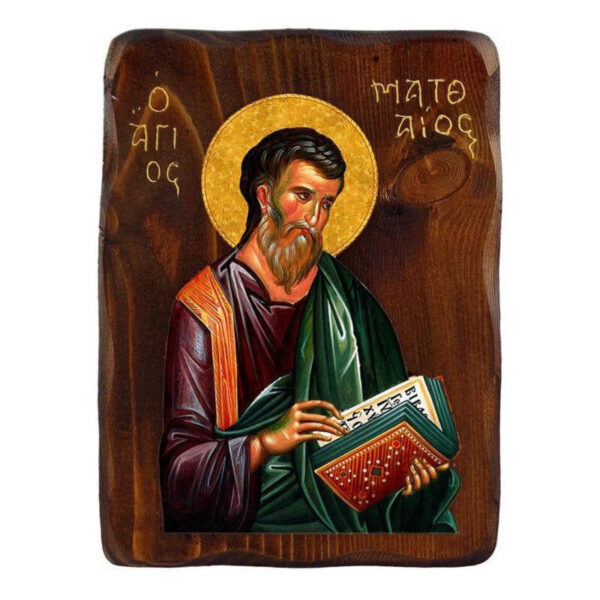 Εικόνα Ορθοδοξίας με περίγραμμα χρυσό σε ξύλο Φλαμουρίας με βάση Εικόνα Αγίου Ματθαίου του Αποστόλου, Χειροποίητη ελληνική εικόνα του Αγίου Ματθαίου, επιτοίχια πλάκα βυζαντινής τέχνης, θρησκευτικό δώρο, χριστιανική διακόσμηση Διάσταση 45×35 cm (17,7 x 13,8 ίντσες) INTRAEK-543216724147