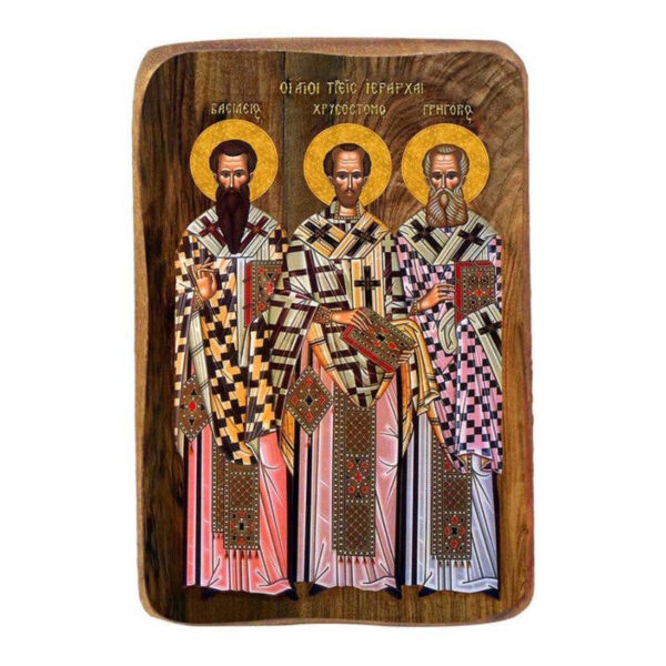 Εικόνα Ορθοδοξίας με περίγραμμα χρυσό σε ξύλο Φλαμουρίας με βάση Μπομπονιέρα Βάπτισης Τρεις Ιεράρχες Σετ 20 τεμαχίων, Εικόνα Βάπτισης, Χειροποίητη Βυζαντινή εικόνα Bomboniera 9x6cm, Χριστιανικό Δώρο Διάσταση 45×35 cm (17,7 x 13,8 ίντσες) INTRAEK-543216724075