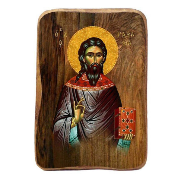 Εικόνα Ορθοδοξίας με περίγραμμα χρυσό σε ξύλο Φλαμουρίας με βάση Μπομπονιέρα Βάπτισης Άγιος Ραφαήλ Σετ 20 τεμαχίων, Εικόνα Βάπτισης, Χειροποίητη Βυζαντινή εικόνα Bomboniera 9x6cm, Χριστιανικό Δώρο Διάσταση 45×35 cm (17,7 x 13,8 ίντσες) INTRAEK-543216724036
