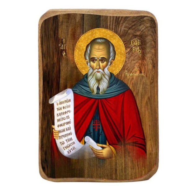 Εικόνα Ορθοδοξίας με περίγραμμα χρυσό σε ξύλο Φλαμουρίας με βάση Μπομπονιέρα Βάπτισης Άγιος Σάββας Σετ 20 τεμαχίων, Εικόνα Βάπτισης, Χειροποίητη Βυζαντινή εικόνα Bomboniera 9x6cm, Χριστιανικό Δώρο Διάσταση 45×35 cm (17,7 x 13,8 ίντσες) INTRAEK-543216724034