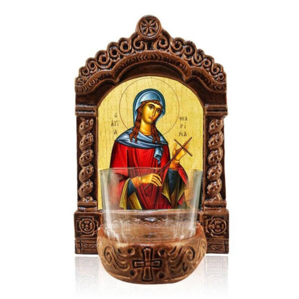 Εικόνα Ορθοδοξίας με περίγραμμα χρυσό σε ξύλο Φλαμουρίας με βάση Φωτιστικό Αγρυπνίας Αγίας Μαρίνας, Αγία Μαρίνα η Μεγαλομάρτυς Ελληνική Επιτραπέζια Εικόνα, Χειροποίητο Κεραμικό Φωτιστικό με Γυάλινο Κύπελλο Διάσταση 45×35 cm (17,7 x 13,8 ίντσες) INTRAEK-543216723881