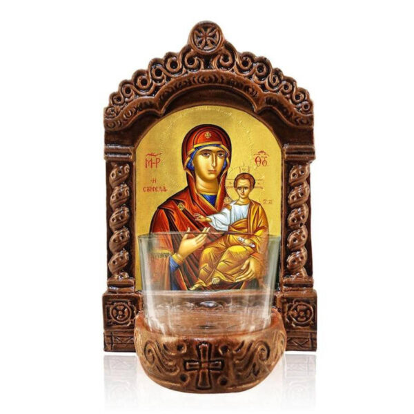 Εικόνα Ορθοδοξίας με περίγραμμα χρυσό σε ξύλο Φλαμουρίας με βάση Παναγία Σουμελά Φωτιστικό Αγρυπνίας, Παναγία Σουμελά Ελληνικής κατασκευής Επιτραπέζια Εικόνα, Χειροποίητο Κεραμικό Φωτιστικό Αγρυπνίας με Γυάλινο Κύπελλο Διάσταση 45×35 cm (17,7 x 13,8 ίντσες) INTRAEK-543216723870
