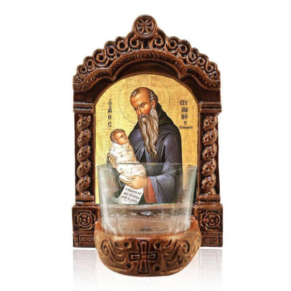 Εικόνα Ορθοδοξίας με περίγραμμα χρυσό σε ξύλο Φλαμουρίας με βάση Φωτιστικό Αγρυπνίας Αγίου Στυλιανού, Παιδικός Προστάτης Αγίου Στυλιανού, Ελληνικής κατασκευής Επιτραπέζια εικόνα, Χειροποίητο Κεραμικό Φωτιστικό με Γυάλινο Κύπελλο Διάσταση 45×35 cm (17,7 x 13,8 ίντσες) INTRAEK-543216723868
