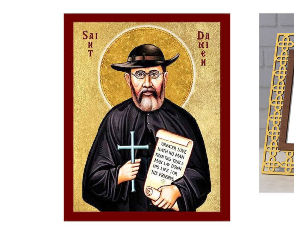 Ιδανική για χώρους προσευχής, διακόσμηση εκκλησιών ή ως στοχαστικό δώρο, αυτή η εικόνα γιορτάζει την πνευματική κληρονομιά του Saint Damien ως προστάτη των ασθενών, των φροντιστών και εκείνων που χρειάζονται ελπίδα και θεραπεία.