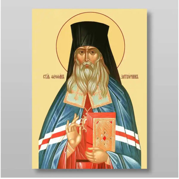Εικόνα Ορθοδοξίας με περίγραμμα χρυσό σε ξύλο Φλαμουρίας με βάση Feofan the Recluse άγιος επίσκοπος, Χειροποίητη Ελληνορθόδοξη , Κρεμαστή πλάκα βυζαντινής τέχνης, χριστιανική τέχνη Διάσταση 10×7 cm (3,9 x 2,8 ίντσες) INTRAEK-71202