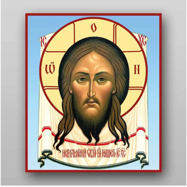Εικόνα Ορθοδοξίας με περίγραμμα χρυσό σε ξύλο Φλαμουρίας με βάση Το Savior Not Made by Hands Χειροποίητη Ελληνορθόδοξη , Κρεμαστή πλάκα βυζαντινής τέχνης, χριστιανική τέχνη Διάσταση 10×7 cm (3,9 x 2,8 ίντσες) INTRAEK-7922