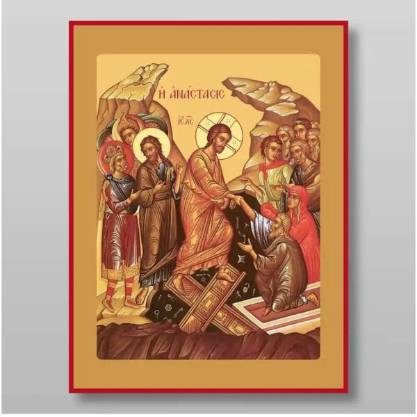 Εικόνα Ορθοδοξίας με περίγραμμα χρυσό σε ξύλο Φλαμουρίας με βάση Ανάσταση Χριστού. Το Harrowing of Hades Χειροποίητη Ελληνορθόδοξη , Κρεμαστή πλάκα βυζαντινής τέχνης, χριστιανική τέχνη Διάσταση 10×7 cm (3,9 x 2,8 ίντσες) INTRAEK-7851