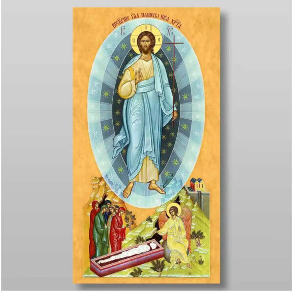 Εικόνα Ορθοδοξίας με περίγραμμα χρυσό σε ξύλο Φλαμουρίας με βάση Ανάσταση του Χριστού Χειροποίητη Ελληνορθόδοξη , Κρεμαστή πλάκα βυζαντινής τέχνης, χριστιανική τέχνη Διάσταση 10×7 cm (3,9 x 2,8 ίντσες) INTRAEK-7811