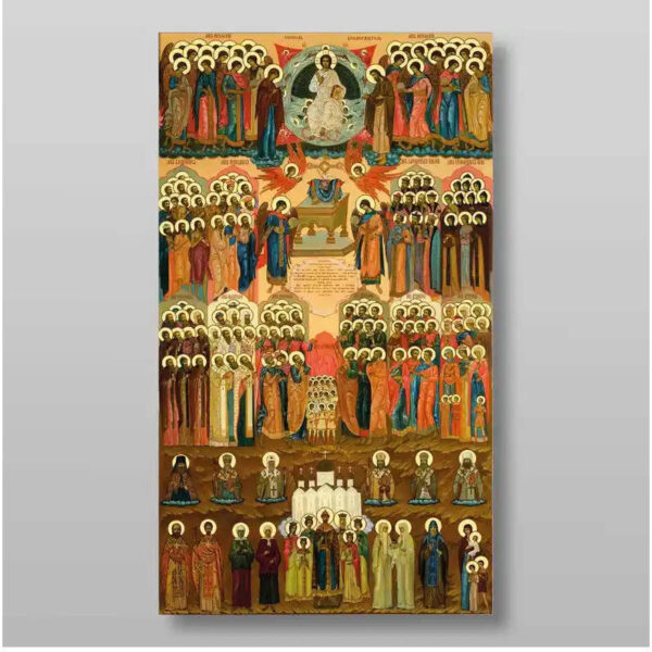 Εικόνα Ορθοδοξίας με περίγραμμα χρυσό σε ξύλο Φλαμουρίας με βάση Άγιοι Πάντων, Χειροποίητη Ελληνορθόδοξη , Κρεμαστή πλάκα βυζαντινής τέχνης, χριστιανική τέχνη Διάσταση 15×11 cm (5,9 x 4,3 ίντσες) INTRAEK-21340