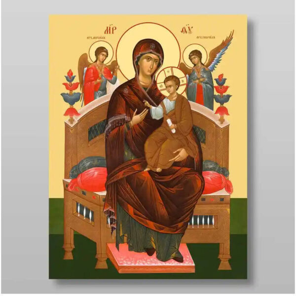 Εικόνα Ορθοδοξίας με περίγραμμα χρυσό σε ξύλο Φλαμουρίας με βάση The Mother of God Queen of All, Pantanassa Χειροποίητη Ελληνορθόδοξη , Κρεμαστή πλάκα βυζαντινής τέχνης, χριστιανική τέχνη Διάσταση 15×11 cm (5,9 x 4,3 ίντσες) INTRAEK-21255