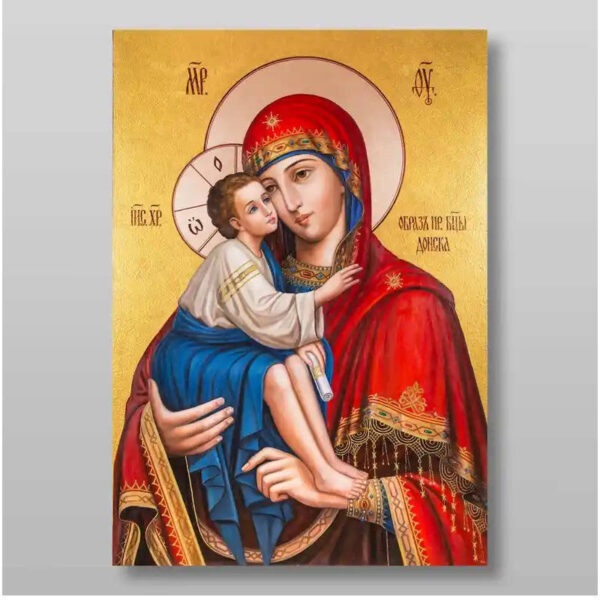 Εικόνα Ορθοδοξίας με περίγραμμα χρυσό σε ξύλο Φλαμουρίας με βάση Εικόνα της Μητέρας του Θεού Donskaya Χειροποίητη Ελληνορθόδοξη , Κρεμαστή πλάκα βυζαντινής τέχνης, χριστιανική τέχνη Διάσταση 15×11 cm (5,9 x 4,3 ίντσες) INTRAEK-21251