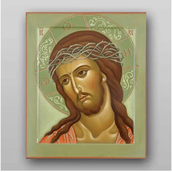 Εικόνα Ορθοδοξίας με περίγραμμα χρυσό σε ξύλο Φλαμουρίας με βάση Ο Ιησούς Χριστός σε ένα αγκάθινο στεφάνι κατεβάστε το ψηφιακό Χειροποίητη Ελληνορθόδοξη , Κρεμαστή πλάκα βυζαντινής τέχνης, χριστιανική τέχνη Διάσταση 15×11 cm (5,9 x 4,3 ίντσες) INTRAEK-21185