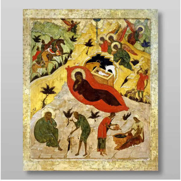 Εικόνα Ορθοδοξίας με περίγραμμα χρυσό σε ξύλο Φλαμουρίας με βάση Γέννηση του Ιησού Χριστού, Χειροποίητη Ελληνορθόδοξη , Κρεμαστή πλάκα βυζαντινής τέχνης, χριστιανική τέχνη Διάσταση 15×11 cm (5,9 x 4,3 ίντσες) INTRAEK-21183