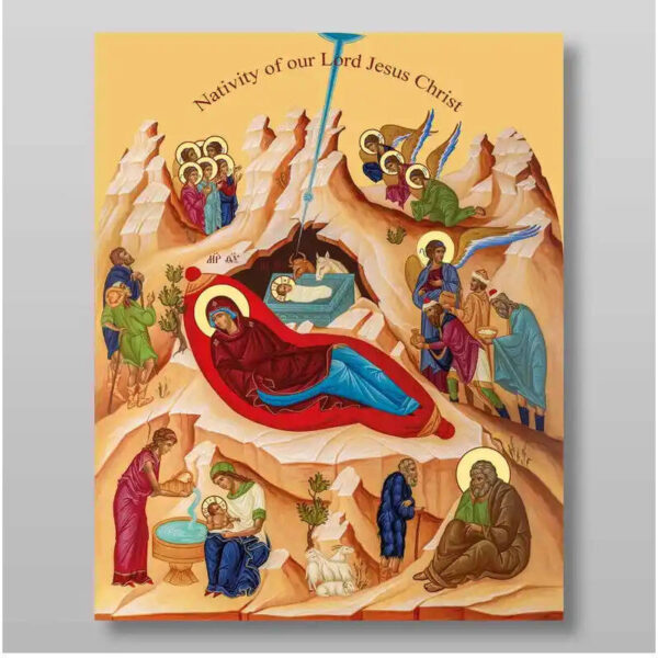 Εικόνα Ορθοδοξίας με περίγραμμα χρυσό σε ξύλο Φλαμουρίας με βάση Εικόνα της Γέννησης του Χριστού – Χειροποίητη Ελληνορθόδοξη , Κρεμαστή πλάκα βυζαντινής τέχνης, χριστιανική τέχνη Διάσταση 15×11 cm (5,9 x 4,3 ίντσες) INTRAEK-21171