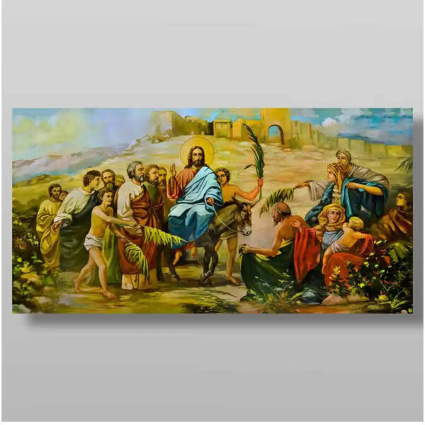 Εικόνα Ορθοδοξίας με περίγραμμα χρυσό σε ξύλο Φλαμουρίας με βάση Είσοδος του Κυρίου στην Ιερουσαλήμ, Χειροποίητη Ελληνορθόδοξη , Κρεμαστή πλάκα βυζαντινής τέχνης, χριστιανική τέχνη Διάσταση 15×11 cm (5,9 x 4,3 ίντσες) INTRAEK-21129