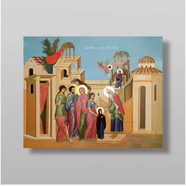 Εικόνα Ορθοδοξίας με περίγραμμα χρυσό σε ξύλο Φλαμουρίας με βάση Εισαγωγή της Θεοτόκου στο Ναό, Χειροποίητη Ελληνορθόδοξη , Κρεμαστή πλάκα βυζαντινής τέχνης, χριστιανική τέχνη Διάσταση 15×11 cm (5,9 x 4,3 ίντσες) INTRAEK-21100