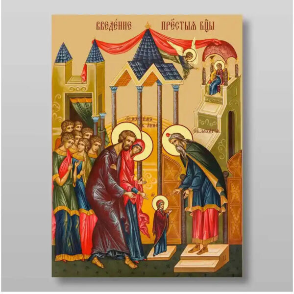 Εικόνα Ορθοδοξίας με περίγραμμα χρυσό σε ξύλο Φλαμουρίας με βάση Εισαγωγή της Θεοτόκου στο Ναό, Χειροποίητη Ελληνορθόδοξη , Κρεμαστή πλάκα βυζαντινής τέχνης, χριστιανική τέχνη Διάσταση 15×11 cm (5,9 x 4,3 ίντσες) INTRAEK-21094