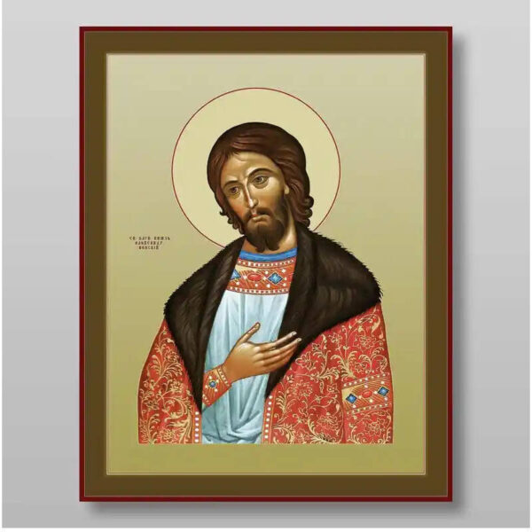 Εικόνα Ορθοδοξίας με περίγραμμα χρυσό σε ξύλο Φλαμουρίας με βάση Alexander Nevsky holy noble prince Χειροποίητη Ελληνορθόδοξη , Κρεμαστή πλάκα βυζαντινής τέχνης, χριστιανική τέχνη Διάσταση 15×11 cm (5,9 x 4,3 ίντσες) INTRAEK-21069