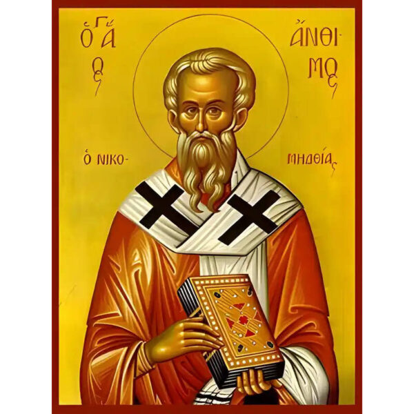 Εικόνα Ορθοδοξίας με περίγραμμα χρυσό σε ξύλο Φλαμουρίας με βάση Εικόνα ΑΓΙΟΣ ΑΝΘΙΜΟΣ ΙΕΡΟΜΑΡΤΥΣ, ΕΠΙΣΚΟΠΟΣ ΝΙΚΟΜΗΔΕΙΑΣ Χειροποίητη Ελληνορθόδοξη εικόνα του Ιησού Χριστού, Κρεμαστή πλάκα βυζαντινής τέχνης, χριστιανική τέχνη Διάσταση 15×11 cm (5,9×4,3 ίντσες) INTRAEK-337757865096